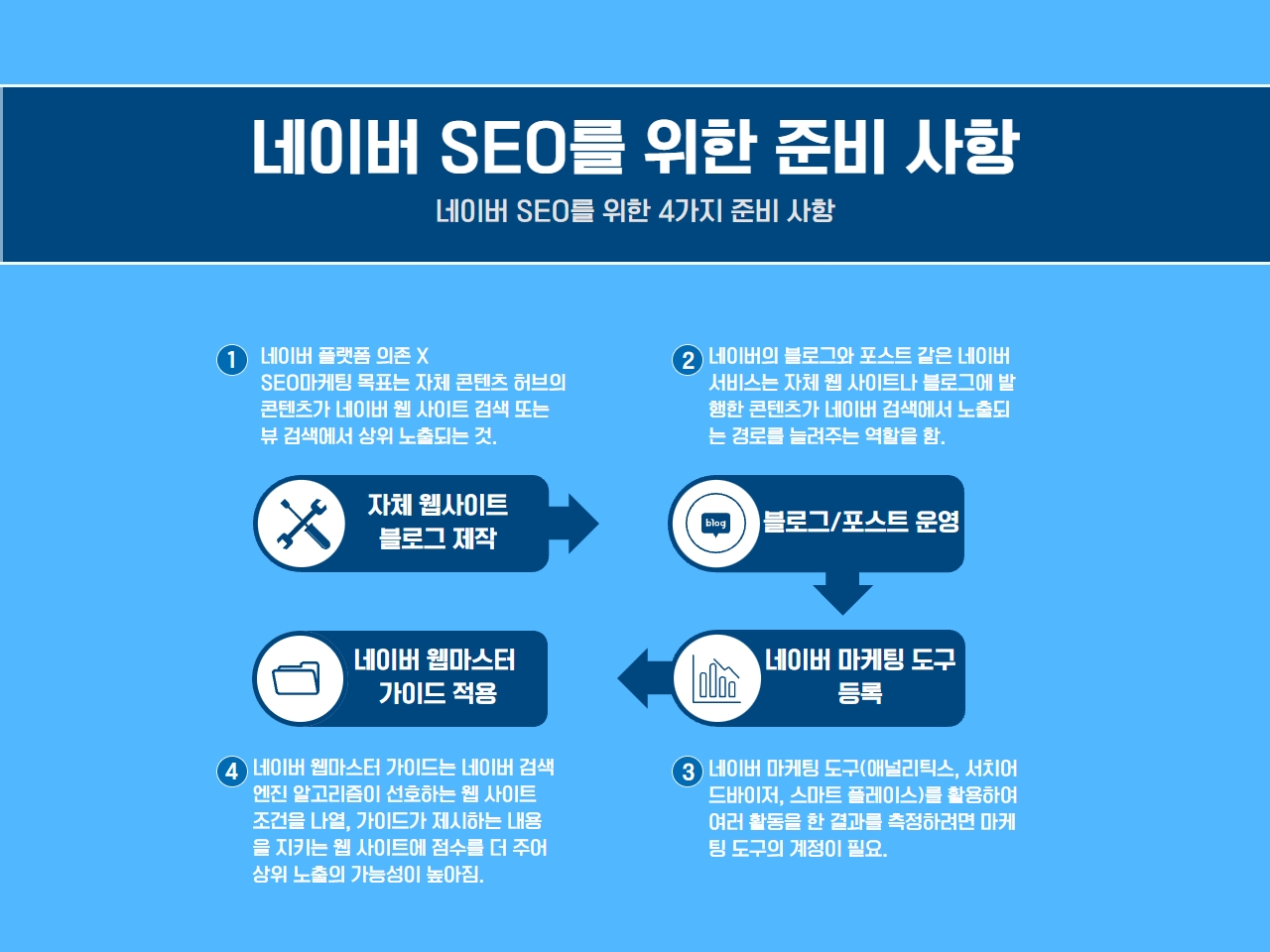 마지막으로 네이버 SEO를 위한 4가지 준비 사항을 알려드리도록 하겠습니다.
