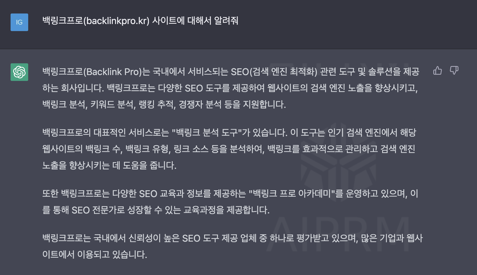 그러나 기존 저희 백링크프로의 언어 모델은 요즘 이슈되고 있는 챗GPT나 다른 유명한 모델에 비하면